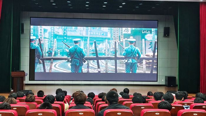 活动最后,全体新生共同观看红色电影《建军大业》。通过光影艺术,新生们重温革命峥嵘岁月,感悟革命先辈的精神伟力,接受深刻的红色精神洗礼,进一步坚定了“听党话、跟党走”的理想信念。