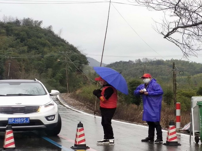 18数学1班纪张婧月同学在家乡自觉配合疫情的防控工作,积极参与安徽省池州市东至县大渡口镇新丰圩的志愿者工作,在自己所在村庄疫情防控劝导点,宣传防疫信息,登记出入人口信息,帮助测量体温,协助其他的工作者完成劝导工作。