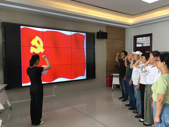 会后,全体教师党员在鲜艳的党旗前,重温入党誓词,在庄重的仪式中接受党性教育。