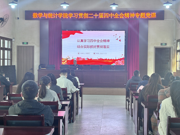 随后,学院党总支书记刘双四在北岸镇五渡村大礼堂给全体党员老师上了一堂生动的专题党课。党课以“认真学习四中全会精神 结合实际抓好贯彻落实”为题,围绕党的二十届四中全会的核心要义、精神实质与实践要求,结合学院教育教学、学科建设及服务地方工作实际,深入解读全会精神对高校教师党员的实践指引。授课过程中,党员教师们结合自身岗位职责展开交流讨论,纷纷表示将把全会精神转化为推动工作的实际行动,以更饱满的热情投身教育事业,为地方发展贡献力量。