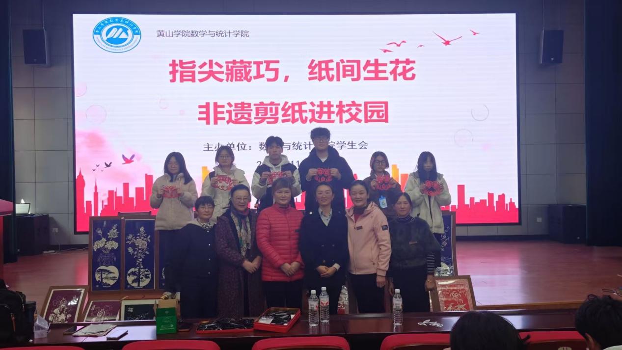 当日上午,“指尖藏巧,纸间生花”非遗剪纸进校园主题讲座在横江校区报告厅举行,特邀黄山市省级非物质文化遗产“新安剪影”代表性传承人金绍花老师主讲,通过图文展示、实物陈列等形式,系统梳理了剪纸艺术的历史脉络、流派分布及工具材料应用知识,让在场学生对这一非遗项目的文化内涵有了全景式认知。