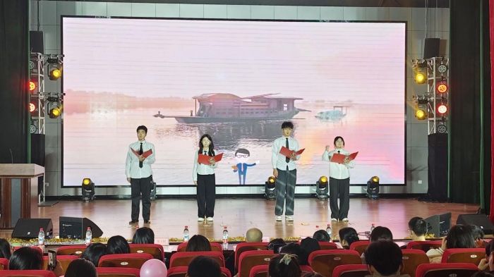 文艺表演环节精彩纷呈,节目形式丰富多样。朗诵《百年交响》,以铿锵有力的语调诉说百年征程,尽显家国情怀;模特队表演《今天你y2k了吗》则用新潮的走秀展现了学生的青春创意;《爱的回归线》、《我们俩》、《恋爱告急》、《故乡的原风景》等歌曲、舞蹈、乐器独奏轮番上演。校园乐队带来的《一路向北》演奏更是将现场氛围点燃,少年们的热血与洒脱在音符里展现得淋漓尽致;小品《再见老师》聚焦师生关系这一暖心主题,通过还原课堂互动、学业帮扶等贴近校园生活的真实情节,生动演绎出学院师生之间互敬互爱、携手共进的温馨氛围。