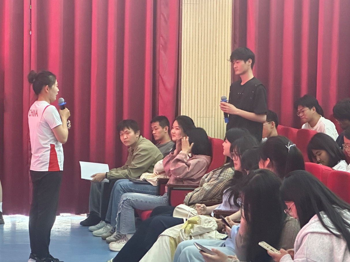 活动开始,吕秀芝分享自己的体育成长生涯,从入选国家队到获得奥运铜牌,在荣誉的背后,是她多年如一日的刻苦训练与顽强拼搏。从皖南乡村女孩到奥运赛场的领奖台,她的每一步都凝聚着汗水与坚持。她的奥运精神深深的感染者场下同学,同时这种永不言败的精神也帮助同学们树立积极的人生目标,培养逆境中的抗压能力与韧性。随后,分享会进入互动环节,同学们积极提问,在这一环节中吕秀芝耐心解答,结合自身经历给出了许多实用的建议,现场气氛热烈,同学们热情高涨,对竞技体育产生了新的理解与感受。