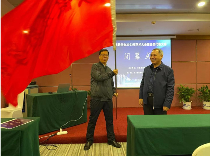 闭幕式由邓建松教授主持。中国科学技术大学叶郁教授、合肥工业大学张莉教授、安徽省教育科学研究院教研员李院德分别对高校科研组、高校教学组以及中学组的分组研讨进行了点评。安徽省数学会副会长朱士信教授对此次会议作总结发言,并宣布2024年学术年会将在蚌埠学院举办。我校tyc41183太阳成集团院长汪宏健和蚌埠学院数理学院院长孙西超进行了会旗交接。