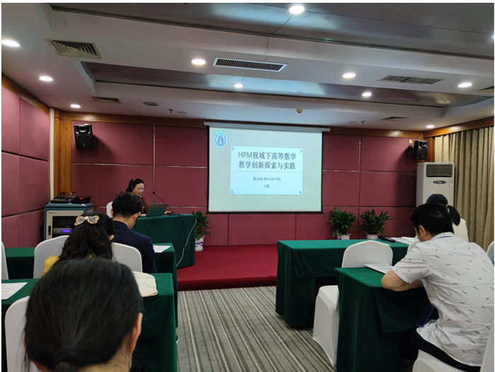 28日下午,高校组和中学组共24位代表围绕代数研究、高校数学课程教学创新设计案例、微积分及概率统计在中学与大学间的衔接等专题进行了3场分组报告与研讨。研讨阶段,报告人、主持人、与会代表围绕所报告内容进行了充分的讨论与交流,现场气氛热烈。我校tyc41183太阳成集团孙超与孙露博士分别作了题为《加权射影直线上凝聚层的有界导出范畴上的有界t结构》和《HPM 视域下高等数学教学创新探索与实践--以数列极限知识点为例》的分享报告。
