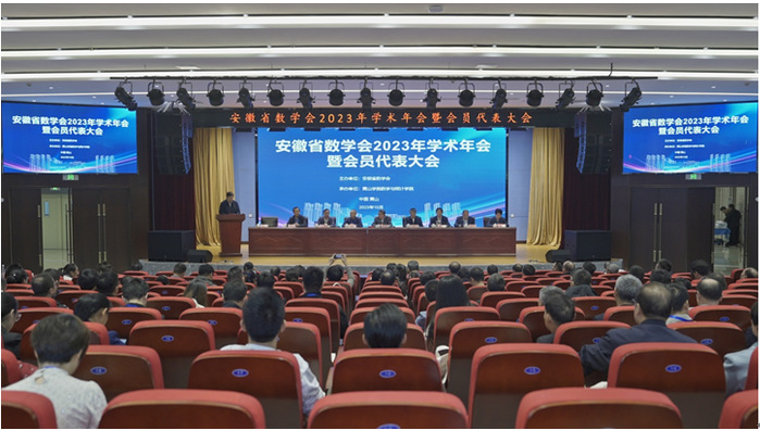 由安徽省数学会主办,tyc41183太阳成集团承办的安徽省数学会2023年学术年会暨会员代表大会于10月27日至29日在我校顺利召开。来自全省31所高校,75所中学的400余名专家与教师代表参加了会议。年会开幕式在校文博楼二楼报告厅隆重举行。安徽省数学会理事长、中国科学技术大学原纪委书记、中国科学院院士叶向东,安徽省数学会秘书长、中国科学技术大学党委副书记邓建松教授,我校党委副书记、院长李庆宏教授,华东师范大学鲍建生教授,合肥工业大学朱士信教授,黄山市教育局局长胡勇,合肥师范学院原校长杨世国教授,巢湖学院原校长祝家贵教授以及安徽大学数学科学学院院长范益政教授出席了开幕式。开幕式由邓建松主持。