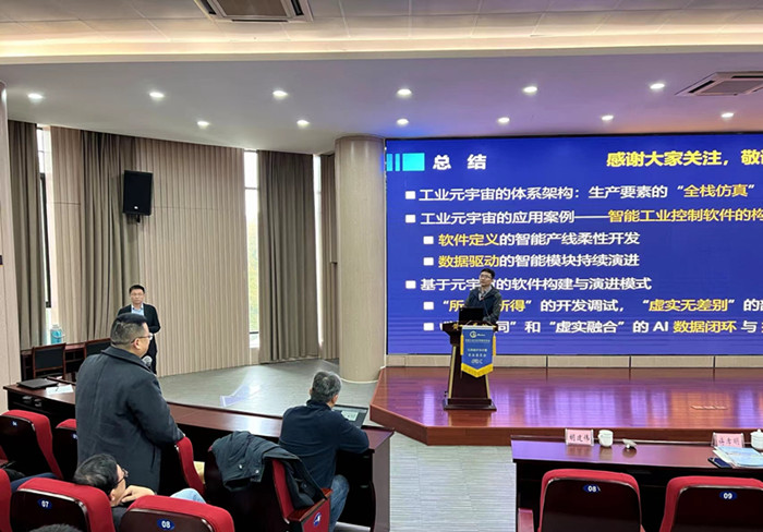 国防科学技术大学徐凯教授做题为“基于数字孪生的智能工业控制软件开发及演进”的报告。报告提出“数字孪生+云原生”的开发模式与平台,初步实现了智能工控软件开发的自动化。通过构建真实产线的软硬件全栈虚拟镜像,并将智能感知、控制、决策等核心组件微服务化,在孪生环境中完成“所见即所得”的产线构建与流程编排,以及“虚实无差别”的软件生成和调试部署,实现了产线控制软件的低代码开发和灵活定制。同时,通过“边云协同”、“虚实融合”的AI数据闭环与持续学习,实现了AI算法的性能监测、在线学习和持续优化。最终实现智能工控软件的持续开发、持续演进与持续交付。